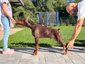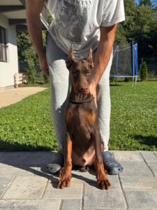 CHOCOLATE litter. Beautiful home made litter, both parents are our dogs with perfect character, both full health tested. Puppies finishes vaccines, ears are cropped, photos were made day before cropping.